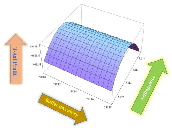 The optimal profit along with optimal result of decision variables are provided in Table 4. Figure 1 shows that the profit function has a concave property, along with optimal buffer and optimal selling price.