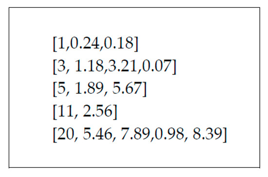 We use a PSO design considering an additional element: the SDEP model. Thus, the 20 functions detailed in Table 2 were taken into account to achieve it. The x independent variable used in these 20 functions corresponds to the FSM (i.e., AFP). We add an additional component to each individual, which corresponds to an integer number in the interval [1,20] which represents the SDEP model to be used by the particle. Consequently, each particle has a different number of dimensions, which will vary according to the coefficients of the selected model. This novel modification allows us to simultaneously optimize the SDEP model to be selected, as well as its parameters. Figure 2 shows a swarm of five particles used by our proposed algorithm. The pseudocode of the proposal is shown in Figure 3.