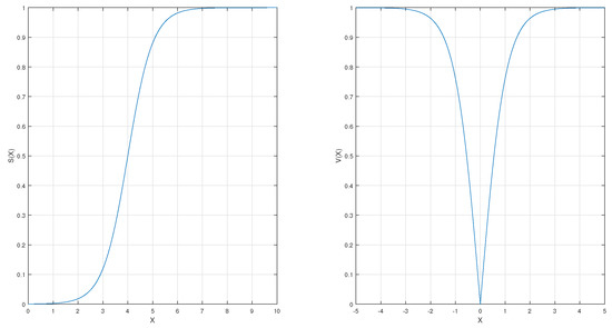 The common S-shaped (Sigmoid) function is used in this version. The S-shaped function is updating, as shown in Equation (11). Figure 2 illustrates the mathematical curve of the Sigmoid function.