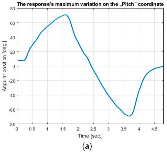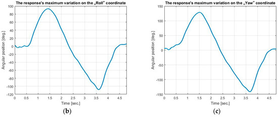 Measured output for the three degree of freedom: (a) pitch; (b) roll; (c) yaw.
