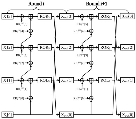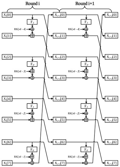 - Hong, D.; Lee, J.K.; Kim, D.C.; Kwon, D.; Ryu, K.H.; Lee, D.G. LEA: A 128-bit block cipher for fast encryption on common processors. In International Workshop on Information Security Applications; Springer: Berlin/Heidelberg, Germany, 2013; pp. 3–27. [Google Scholar]