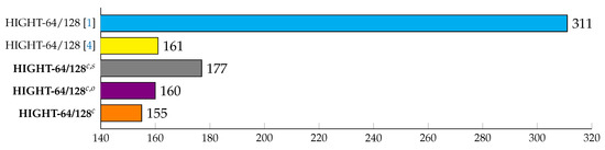 - Kim, B.; Cho, J.; Choi, B.; Park, J.; Seo, H. Compact Implementations of HIGHT Block Cipher on IoT Platforms. Secur. Commun. Netw. 2019, 2019, 1–10. [Google Scholar] [CrossRef]