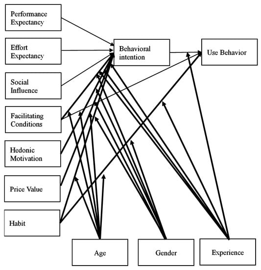 - Venkatesh, V.; Thong, J.Y.L.; Xu, X. Consumer Acceptance and Use of Information Technology: Extending the Unified Theory of Acceptance and Use of Technology. MIS Q. 2012, 36, 157. [Google Scholar] [CrossRef]