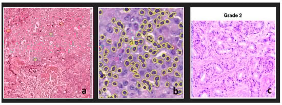 Traditionally, several essential discoveries regarding diseases, such as tumor and contagious conditions, have already been produced by pathologists and analysts. They cautiously and carefully examined pathological specimens. For example, pathologists analyzed the gastric mucosa of individuals with gastritis in [34]. Efforts were made to link the morphological options that come with cancers using their medical behavior. For instance, tumor grading is essential in a patient’s diagnosis and in preparing treatment for many kinds of cancer, such as breast and prostate cancer.