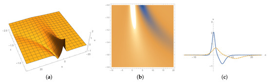 In addition, Equations (7b)–(10b) admit . Thus, from transformation (5), we obtain 1-soliton solution