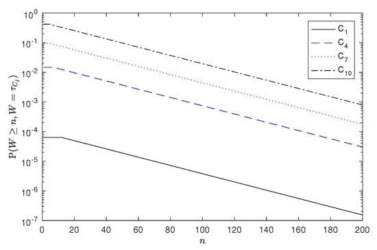 - The conditional probability mass function of W, given , i.e., , , can be computed from the conditional probability generating function of W given , , by a numerical inversion.