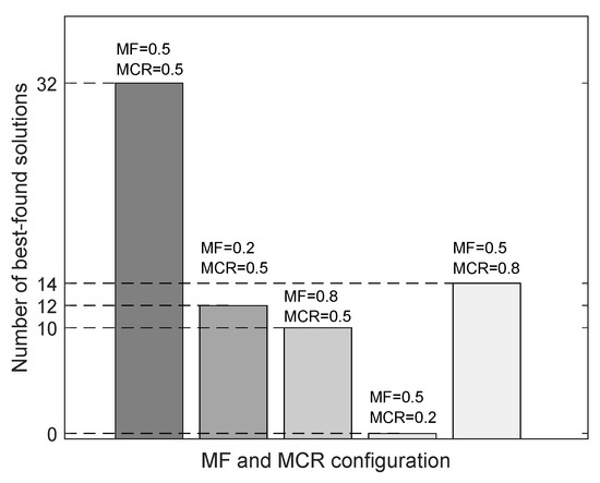 The number of best-found solutions for different MCR and MF values.