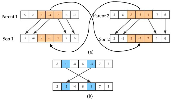 Step 1: Two individuals {5, −1, 3, −4, 7, 6, −2}, {3, 4, 2, −5, 1, −7, 6}, Where N = 7, exchange the middle 3 number {3, −4, 7} and {2, −5, 1} to each son sequence;