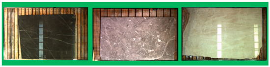 The experimental data in this work are mainly provided by stone enterprises. They are composed of rectangular stone orders and original stone pictures. Rectangular stone orders contain a total of 272 rectangles in 49 specifications. Table 1 summarizes the partial rectangle information. Each rectangle will be renumbered, with numbers ranging from 1 to 272. Another program that we implemented can obtain the vertex coordinates of the slate through the slate image. Six slates, which are approximately 3 × 3 m in size, are utilized in this work. Part of the slate image is illustrated in Figure 7. The data can be downloaded from https://github.com/chkz/Plate-data.