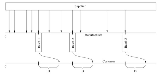 - Hall, N.; Potts, C. Supply chain scheduling: Batching and delivery. Oper. Res. 2003, 51, 566–584. [Google Scholar] [CrossRef][Green Version]