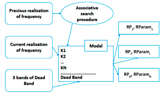 The associative search technique consists of two sequential stages: (i) the hypersurface is selected in such way that it contains input vector , j = 1, …, s at the current time step t, and (ii) the hypersurface is selected from the historical data archive corresponding to , j = 1, …, s, contains the input vector at the previous time step t − 1. The predicate describing the choice will have the form: