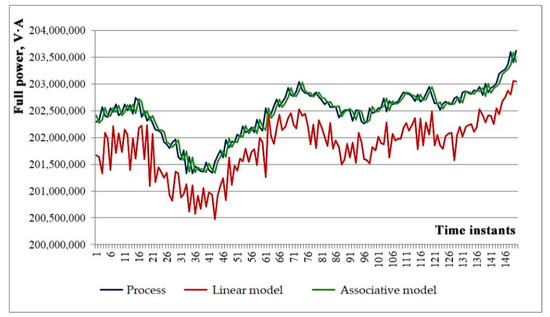 Figure 4 shows the accuracy advantage of the associative model over the traditional linear model. The conception of the authors and their collaborators was illustrated by Mathlab modeling. Process forecast was obtained with the help of conventional linear and associative models running for 43.7 s (2185 time steps, 20 ms per each step).