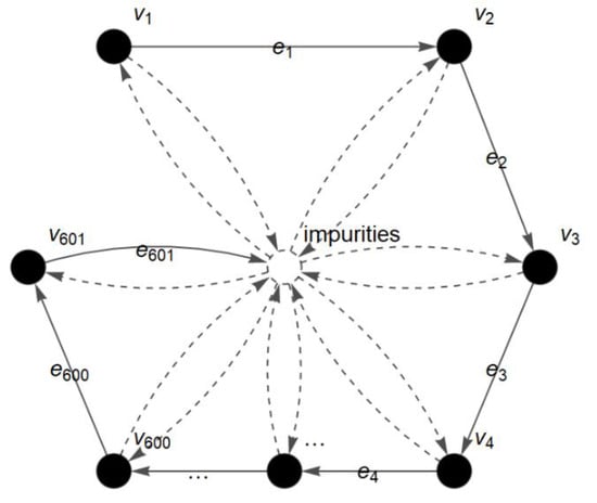 The process of infrared absorption by the gelatin molecule during FTIR analysis is represented in the form of vertices and edges. Each vertex in  represents the wavenumber (cm−1) and an edge in  is the transitional path of a given molecule throughout the FTIR analysis (see Figure 2).