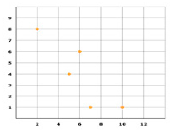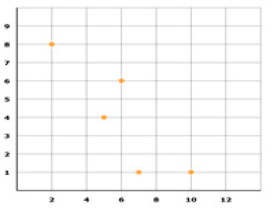 Figure 3 shows a graph with data where the frequency is eight 2s, four 5s, six 6s, one 7, and one 10. Students argued that this graph has the advantage of being able to immediately confirm what the mode is (the number with frequency eight is 2). However, to obtain the median or mode, students have no choice but to list or calculate the data, and therefore, they thought that this graph was not important.