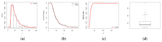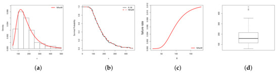 - Cordeiro, G.M.; Hashimoto, E.M.; Ortega, E.M.M. The McDonald Weibull model. Statistics 2012, 48, 256–278. [Google Scholar] [CrossRef]