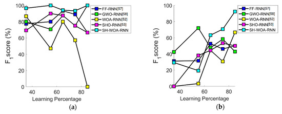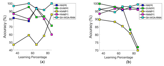As mentioned previously, the proposed mechanical classification model optimizes the features to be selected and the number of hidden neurons in the RNN using the proposed SH-WOA to maximize the classification accuracy. The mathematical formulation for accuracy is represented in Equation (1), in which the variables p, q, r, and s specify the true positive, true negative, false positive, and false negative elements, respectively, during classification.
