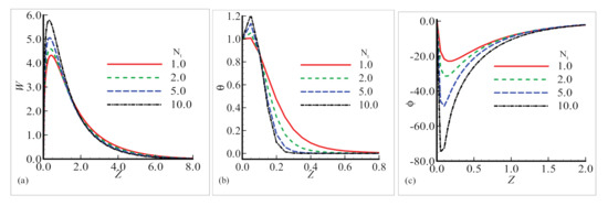 - The graphs sketched in the plume region for many values of magnetic field parameter M show that the flow velocity and nanoparticles volume fraction rise, but no difference is found in the temperature field. The numerical solution obtained around the sphere reflects the influence of the magnetic field parameter on the aforementioned material properties, i.e., increasing the values of the magnetic field parameter.