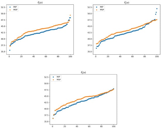 Reference [] compares the stochastic approach with the multiobjective approach when using different techniques. The stochastic approach transforms the MSP on a single-objective stochastic problem, while the multiobjective approach first reduces the stochasticity transforming the MSP on a deterministic multiobjective problem. They highlight that “the multiobjective approach forgets the possible existence of stochastic dependencies between objectives”. Reference [] studies stochastic goal programming, where the deviation of the objective functions to some goals set beforehand to stochastic values is minimized.