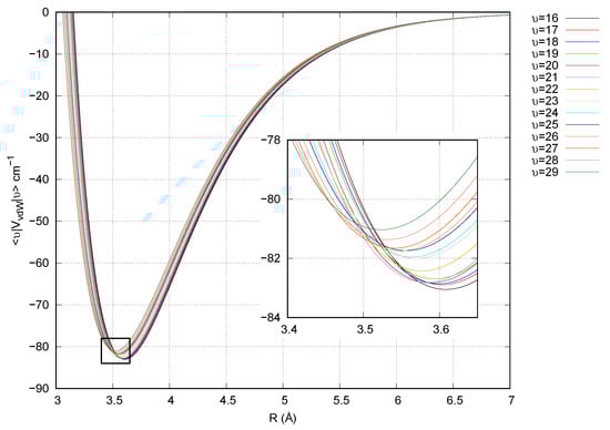 The initial conditions for the classical trajectories are selected randomly for a total energy corresponding to the zero-point of the complex NeBr, for a particular vibrational state of the Br molecule. The component of the momentum that is parallel to the quantum state coupling vector is only taken into account to adjust, in order to conserve, the total energy [,]. In our case, quantum transitions occur between diabatic surfaces, defined for each vibrational level Br. These surfaces are coupled by the NeBr potential. Momenta are adjusted during a surface hop using
