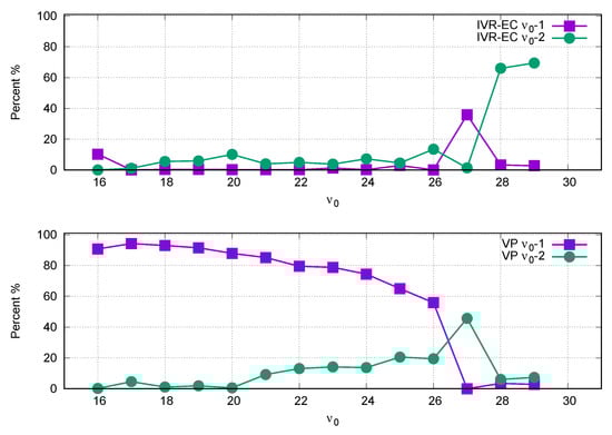 In Figure 5, we can see that from vibrational level the loss of two quanta through the VP process is significant. This causes the system to take longer to dissociate. Particularly for vibrational levels , the predominant process is IVR-EC .