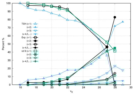 Through the simulation, we can know at what vibrational level the system is, and we do not need algorithms to obtain it. This is very good because the TSH method itself gives us that information. In the following figure, we present the exit channel (statistically) for each initial vibrational level.