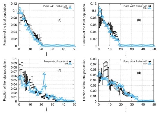 As we can see in Figure 6 that the TSH results are in agreement with previous theoretical and experimental results. Other very important observables are and . The first one is the averaged rotational energy. The second one is the Br-Br angular momentum. Both quantities are calculated when the molecule is dissociated.