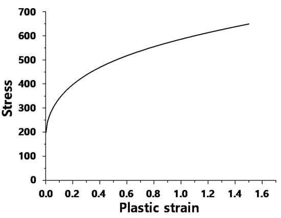 where represents the effective stress, and denotes the increment of effective plastic strain. In order to determine , the following three conditions (yield condition, stress update, and work-hardening) should be satisfied in elastoplastic deformation [33,34].