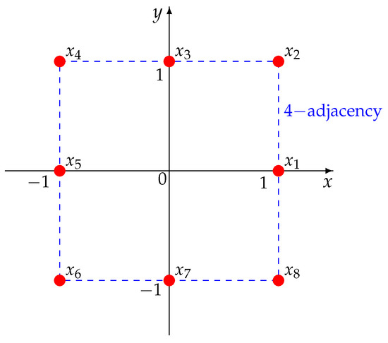 be the digital image in with the -adjacency relation. It can be seen that it is a -connected digital image.