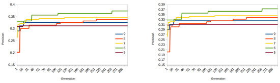 In Table 5 and Table 6, the average precision and variance of the best individuals for each fold on for all the data sets are reported. Although the discovered correlations in some cases greatly differ in terms of their coefficients values, all of them achieve better performances, both for and . This probably hints at a correlation space with many separated local maxima with similar values.