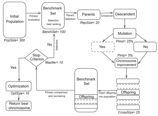 ) composed of the individuals with higher fitness score is included. In each generation, a comparison of the evaluations of all chromosomes in the population is made and the benchmark set is updated removing those individuals with lower fitness value.
