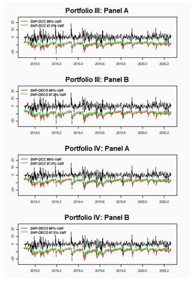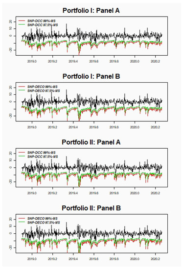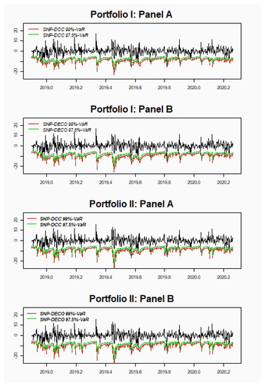 Figure 2 shows the four portfolio returns and the estimated 99%-VaR and 97.5%-VaR either DCC (Panel A) or DECO (Panel B).
