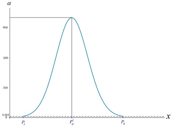 It is suggested that all of the of for are equal to . Obviously, if , then and the triangular fuzzy number of is , where and . Then, the membership function of the triangular-shaped fuzzy number is