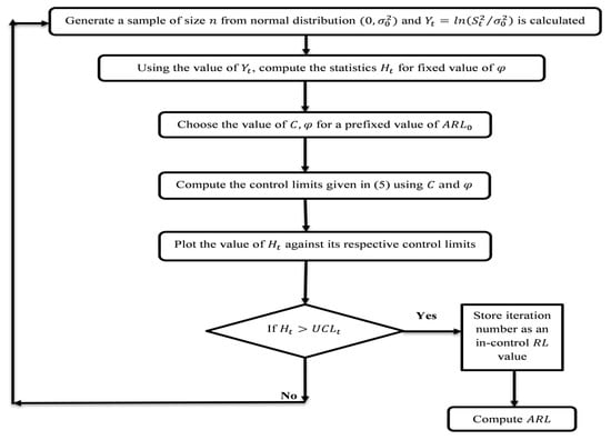 Recently, a homogeneously weighted moving average (HWMA) chart was proposed in Reference [14] to overcome the deficiency in the EWMA chart statistic. Numerous works have been done with the HWMA chart due to its earlier shift detection ability in the process mean as compared to the EWMA chart. The authors of References [15,16] developed the auxiliary information-based HWMA chart and multivariate form of the HWMA chart. The HWMA chart using the neoteric ranked set sampling was proposed in Reference [17]. To enhance the HWMA chart’s performance, a double HWMA chart for efficient monitoring of the process mean was suggested in Reference [18]. The literature mentioned above on the HWMA chart has only monitored the changes in the process mean. To the best of our knowledge, no work has been done in the SPM literature to monitor the changes in the process variance under the HWMA chart scenario. In this study, we fill this gap and suggest a HWMA chart to evaluate the changes in the process variance.