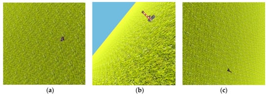 The flying camera was used in the current paper, unlike in References [5,6], where the authors used only the ground camera. So, in the current paper, we are able to analyze the applicability of deep learning technology for many more ranges of angles and coordinates.