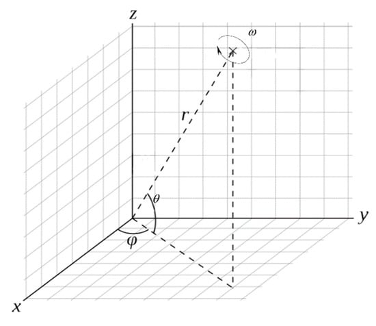 In the case, when the camera is directed to the object origin, its position and orientation can be described by distance to the object origin and by two rotation angles of the vector, connecting the object origin and optical center of the camera: azimuthal , zenith , and camera rotation angle with respect to this vector— (Figure 8).