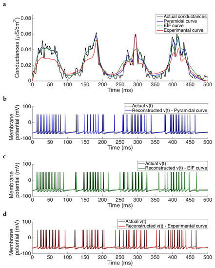 - Vich, C.; Guillamon, A. Dissecting estimation of conductances in subthreshold regimes. J. Comput. Neurosci. 2015, 1–17. [Google Scholar] [CrossRef] [PubMed]