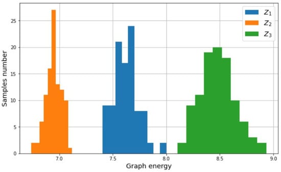 One can see that each class is clearly distinguished from the others by the energy values ranges being completely disjoint. The mean and the standard deviation for each class are presented in Table 1. The obtained results show clearly that the graph energy is a characteristic which allows differing unambiguously between the examined classes.