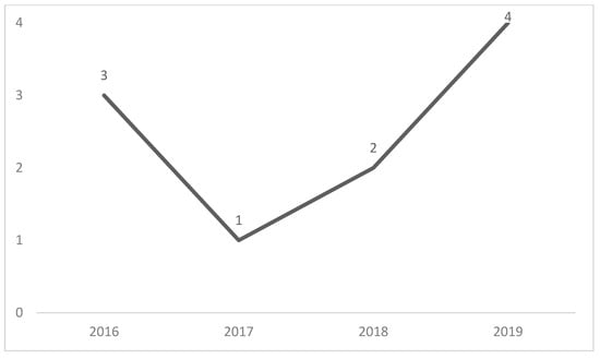 First, the studies were grouped according to the year in which they were published (Figure 2). In this case, it can be seen that the year 2019 was the one with the most contributions, followed by 2016, 2018 and 2017, respectively.