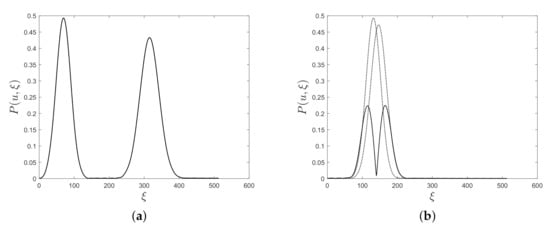 Equation (4) tells us that, for each fixed u, spectrogram profile is a shifted copy of the analysis window , modulated by , as depicted in Figure 3. Indeed, the following evolution law can be derived.