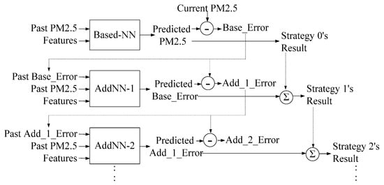 Finally, when all of the AddNNs have been constructed, the study is designed to produce the various strategy results of the CHRNN. Each strategy result is the sum of the outputs of the based-NN and multiple AddNNs, as shown in Figure 10. For instance, the result of Strategy 0 equals the result of the based-NN alone, the result of Strategy 1 is the sum of the outputs of the based-NN and AddNN-1, and so on.