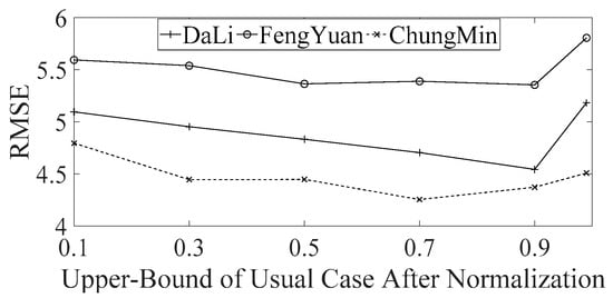 Influence of different upper bounds of normalized values for normal conditions on RMSE in usual case emphasizing normalization (UCENormalization).