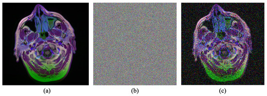 Example of the noise modeling process. (a) Input clean image. (b) Generated noise. (c) Generated noisy image. Source by: (https://www.kaggle.com/mateuszbuda/lgg-mri-segmentation).