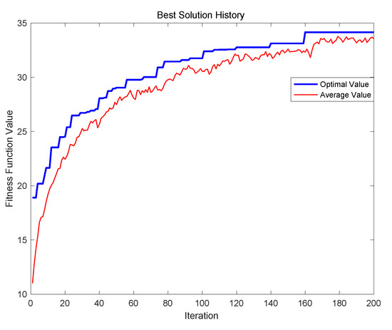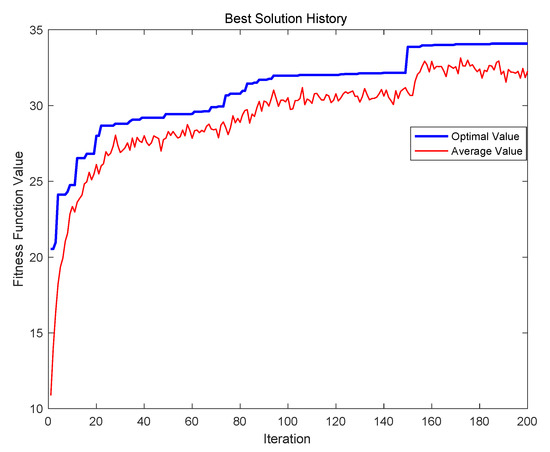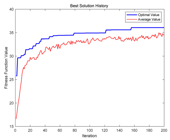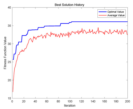 The evolution results of the PGA are illustrated in Figure 6, where the best solution in the experiment can be found when the iteration is 185, and the best value of fitness function is 34.0835.