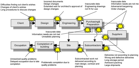 Base on the research of Vrijhoef et al. [22], Figure 3 shows some of the general problems that can occur in the process of construction projects. As we can see, suppliers have a special position in this figure, and they can affect the process more than the other elements. Therefore, the construction industry is highly dependent on contracts with suppliers, and selecting appropriate suppliers for construction companies could be a vital concern [23].