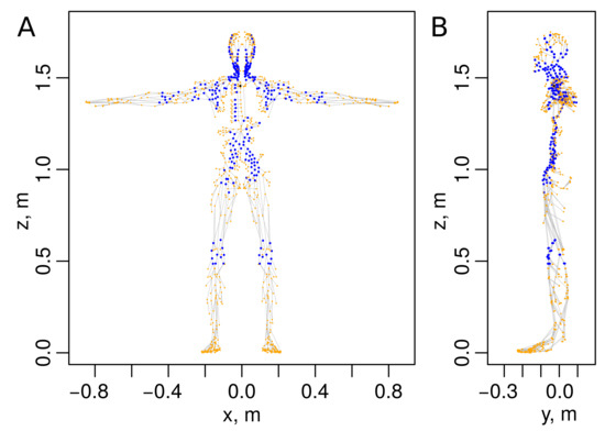 - coordinates of all vertices in the graph are scaled to correspond to the basal 1750 mm height of a man;