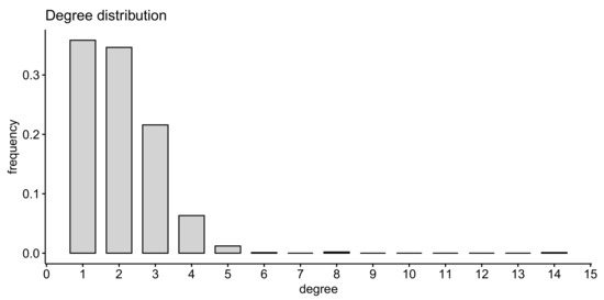 Degree distribution of the rule-based graph presented in Figure 7A.