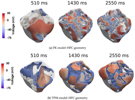 41]. Increased numerical efficiency is enforced, lacking detailed ionic descriptions, although well-suited for large-scale whole-heart numerical studies.
