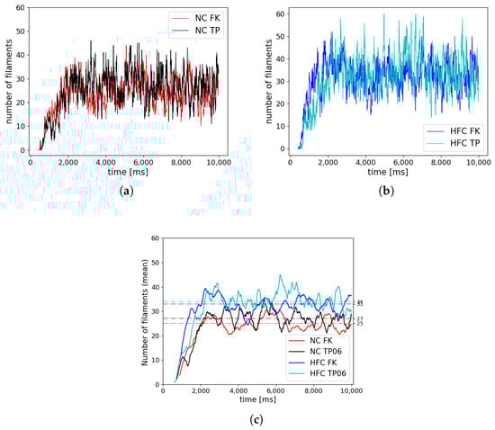 This result, consistent with the literature and specific kinetics described by the TP06 ionic model, was further confirmed by long-run simulations conducted for ventricular fibrillation. The statistical examination of the evolution and the number of vortex filaments provided an enhanced arrhythmogenicity in the diseased case. Constitutive differences among the two electrophysiological models appear in terms of restitution dynamics at large cycle lengths, stimulus intensity, and vulnerable windows. Such a discrepancy is due to the intrinsic complexity of the ionic models in delivering an external stimulation current signal among the different gating variables. The membrane capacitance and the surface-to-volume coefficients regulate the electrical current’s spreading, with a predominant role in ionic modeling cases. Therefore, we highlight the necessity of fine-tuning these parameters when using a physiological approach other than a phenomenological one. However, dissimalirities were negligible for ventricular fibrillation signature. Specifically, irrespective of the healthy or pathological geometry model, the fundamental frequency of the pseudo-ECG during sustained VF is constant. Moreover, the number of filaments in the HFC case was statistically equal among FK and TP06 models.