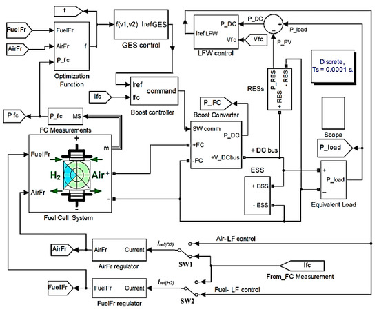 The novelty and main objectives of this study are as follows: (1) to analyze the behavior of the Air-LFW-based strategy for constant and variable load demand up to 8 kW; (2) to evaluate the fuel economy for Air-LFW-based strategy compared to a reference strategy called the Static Feed-Forward (sFF) strategy [45]; (3) to improve the fuel economy using a optimization function based on FC net power and efficiency of hydrogen consumption.