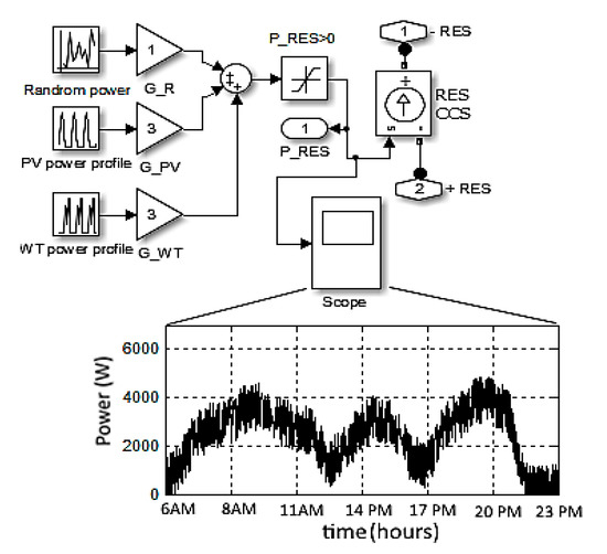 Renewable energy sources—which include solar energy and wind—are inexhaustible, clean, and economically beneficial, but depend largely on the weather. WT and PV energy resources are complementary in a certain period of time, being integrated into RES HPS using different energy management strategy [5]. The diagram of the RES model is shown in Figure 3.